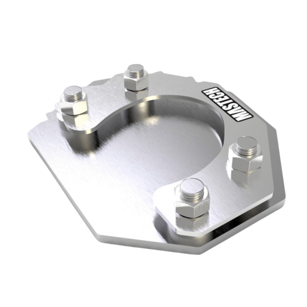 Esta base diseñada especialmente por MASTECH, duplica el area de contacto del gato lateral, evitando el hundimiento de la motocicleta, sobre todos de aquellas con gran peso, en éstas superficies.